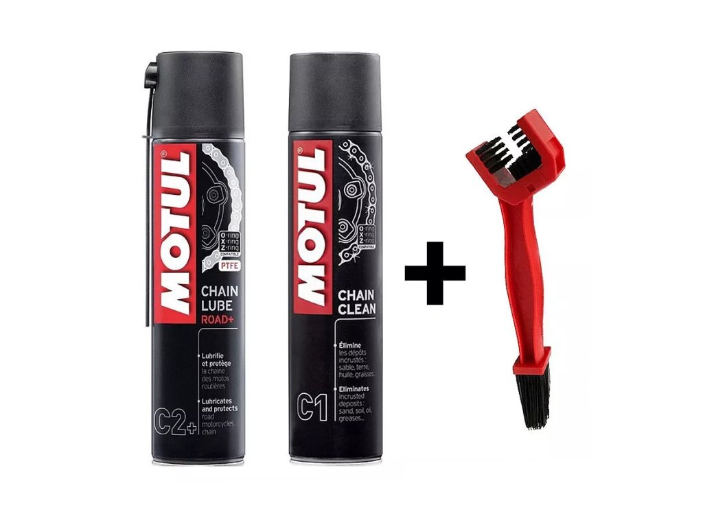 Motul C1 čistič, motul C2+ olej, kartáč, sada, 2x 400ml