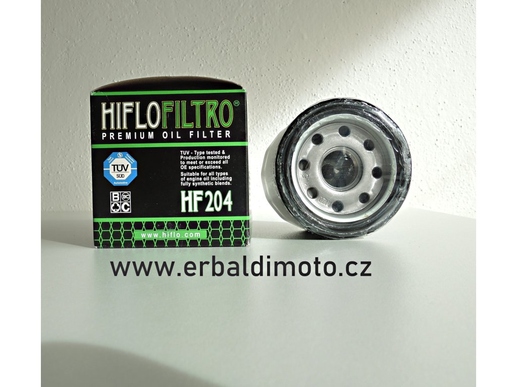 Prémiový olejový filtr HF204 pro různé modely motocyklů.