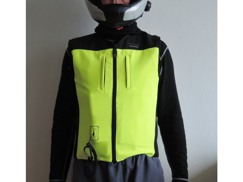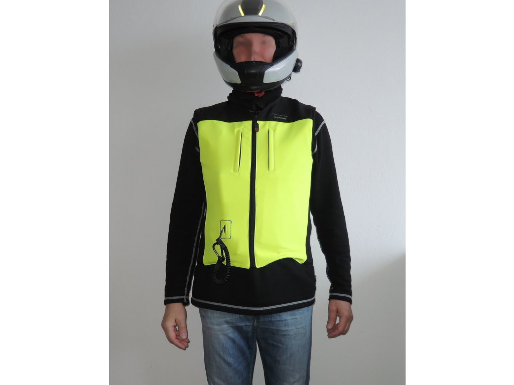 Airbagová vesta pro ochranu motorkáře při pádu z motocyklu, skútru, čtyřkolky nebo i pro jezdce na koní (živém).